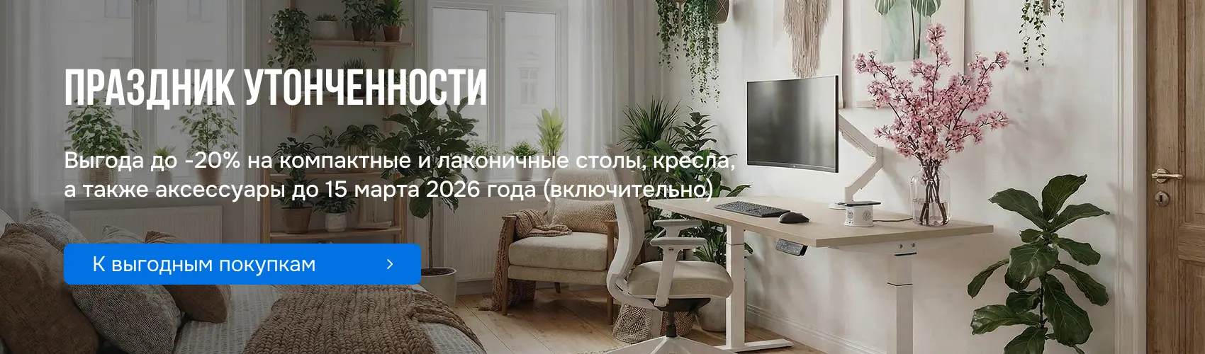 Теперь рабочий стол может менять положение вместе с вами всего за несколько секунд. Смена высоты стола настолько бесшумна, что вы можете не отвлекаться от выполнения важных задач.