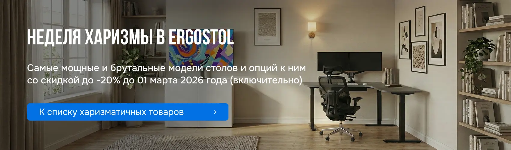 Ergostol - столы нового поколения с регулируемой высотой для работы сидя-стоя. Это динамичное рабочее место, позволяющее выбирать удобную для себя рабочую позу – сидя или стоя.