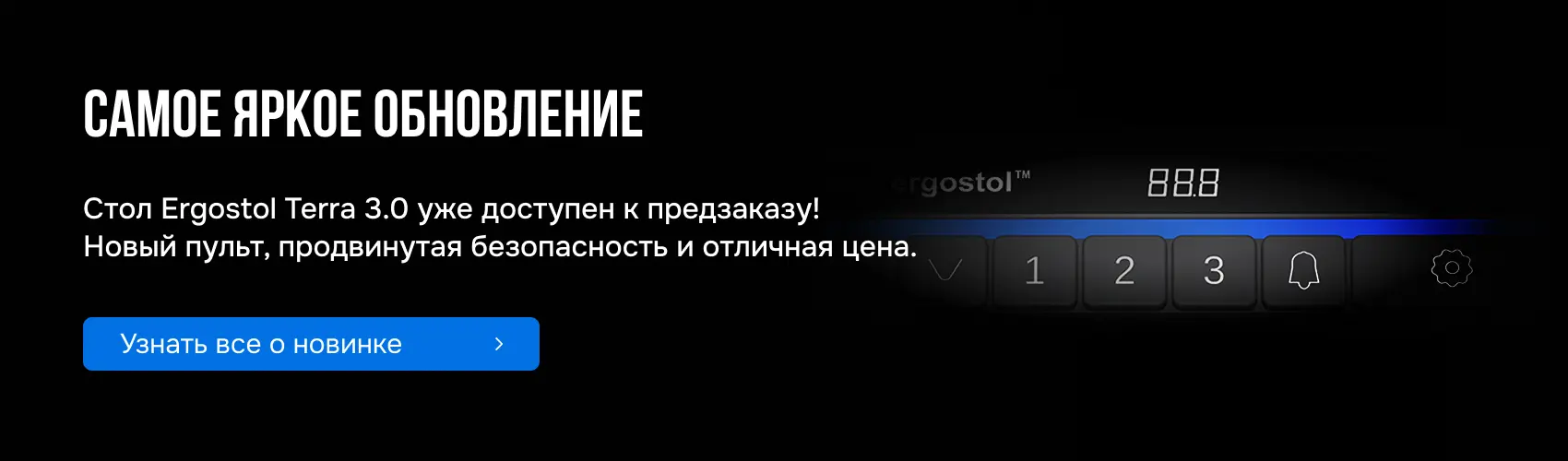 Специально для тех, кто заинтересован в своем здоровье и долголетии, компания Ergostol предлагает столы c регулировкой по высоте, которые позволяют работать стоя и сидя, регулируя положение электроприводом с помощью нажатия кнопки!