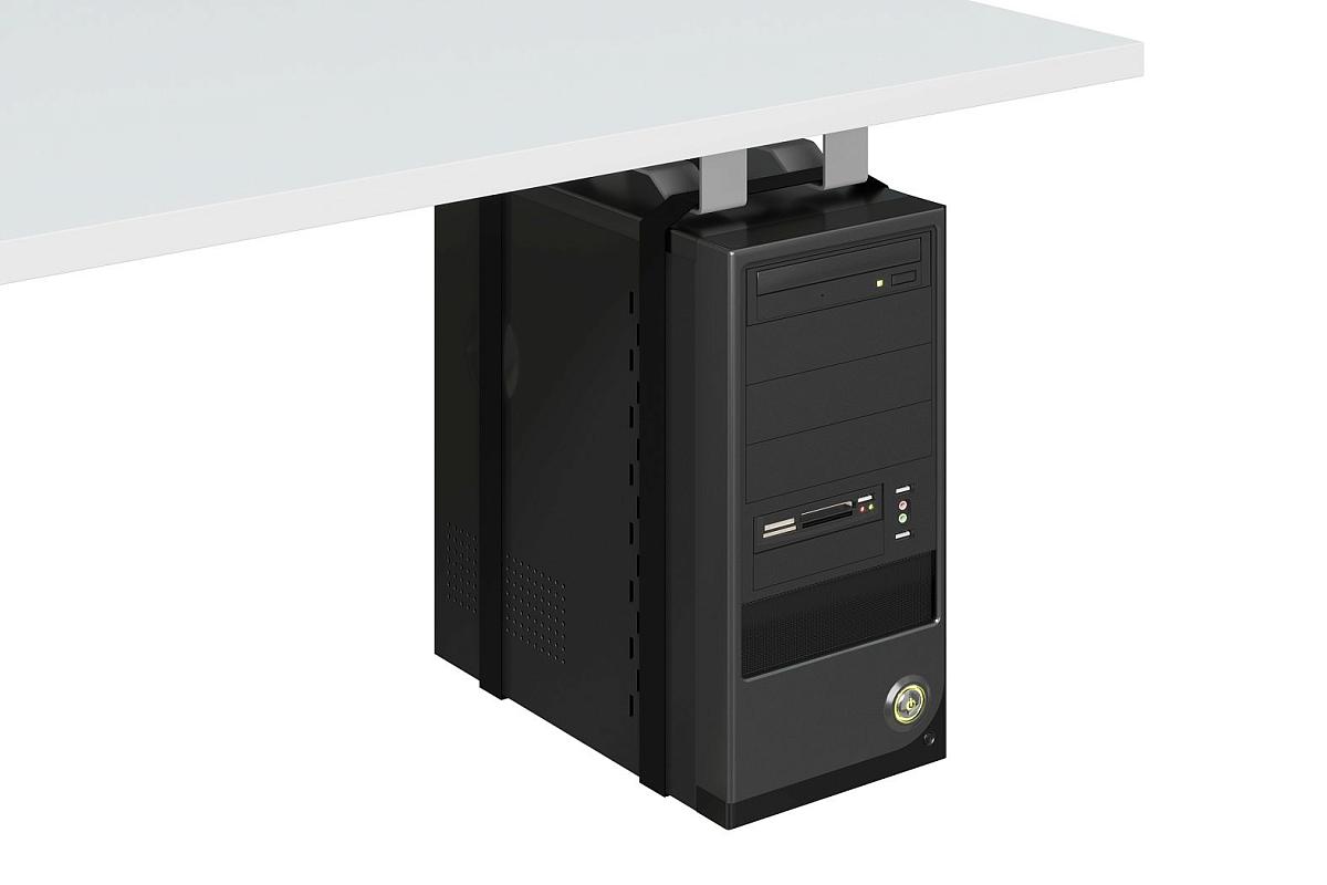 Крепление для системных блоков весом до 10 кг для подвеса под стол в вертикальном или горизонтальном положениях.