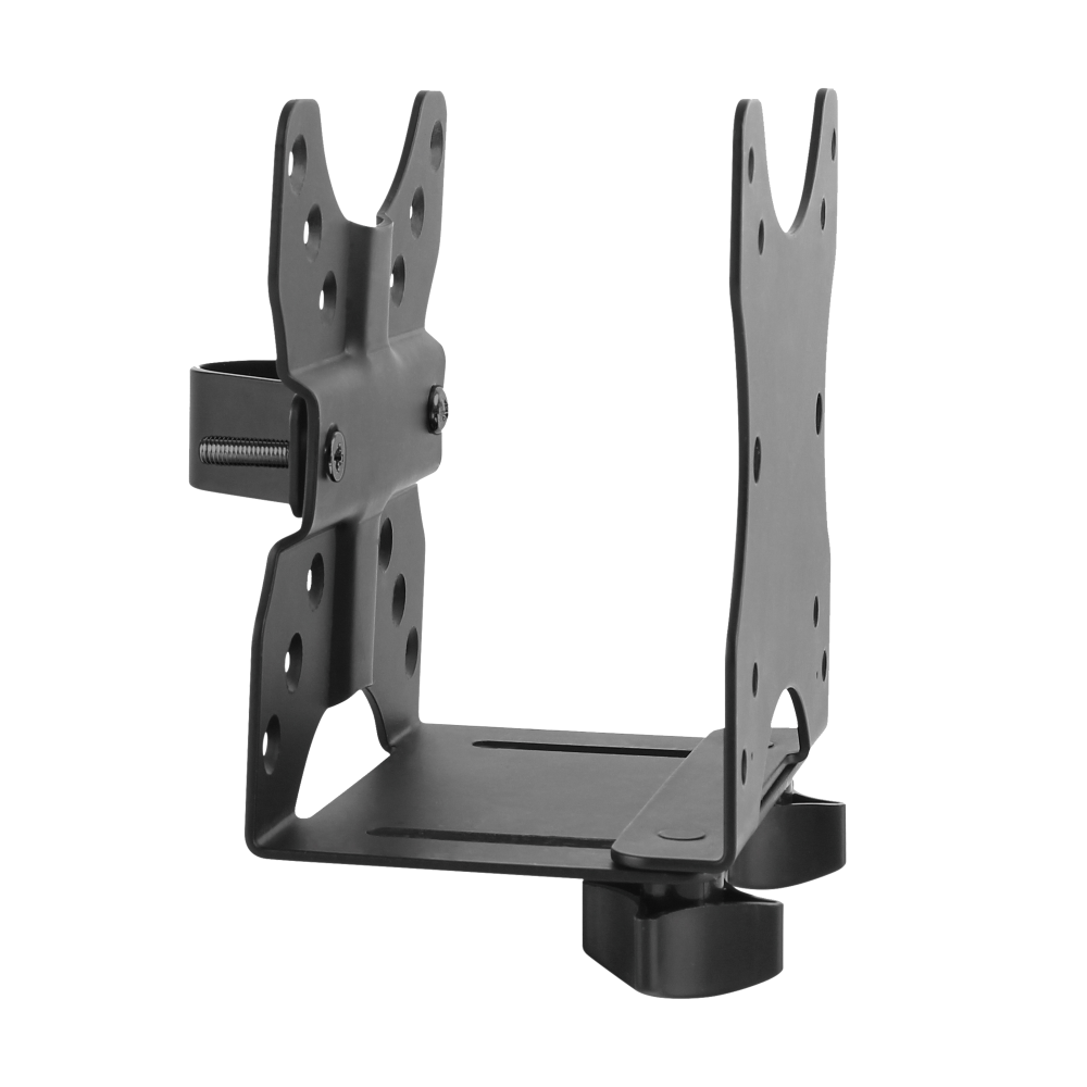 Зажим для круглых опор: кронштейн оснащен металлическим хомутом, который надежно фиксируется на круглых трубах (например, опоре кронштейна для монитора), открывая возможности для нестандартного монтажа.